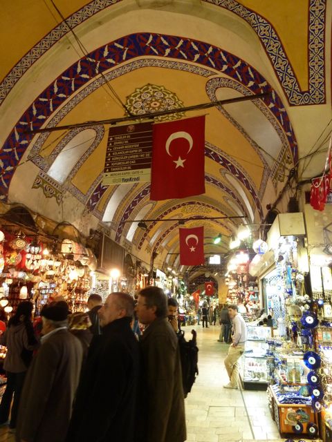 Our guide, Saba gave us some tips for bargaining and after a nice quiet meal with Saba, in the Istanbul Bistro, it was time for some haggling at the Grand Bazaar. The Grand Bazaar is an enclosed market with some 4500 merchant stalls. After a while the shops start to look the same, there’s a leather area, a jewelry area, clothing area rug area, etc but we choose not to venture too far as its like a labyrinth and so easy to get lost. As soon as you look at something, the merchant is there trying to bring you into the shop and get your attention and business. T haggled at one shop and brought the price down quite a bit, but at another, she wasn’t nearly as aggressive, oh well, you win some, you lose some! It was neat to see the place, merchants sitting outside their shops sipping tea, others offering you help to try and persuade you to come into their shops...
